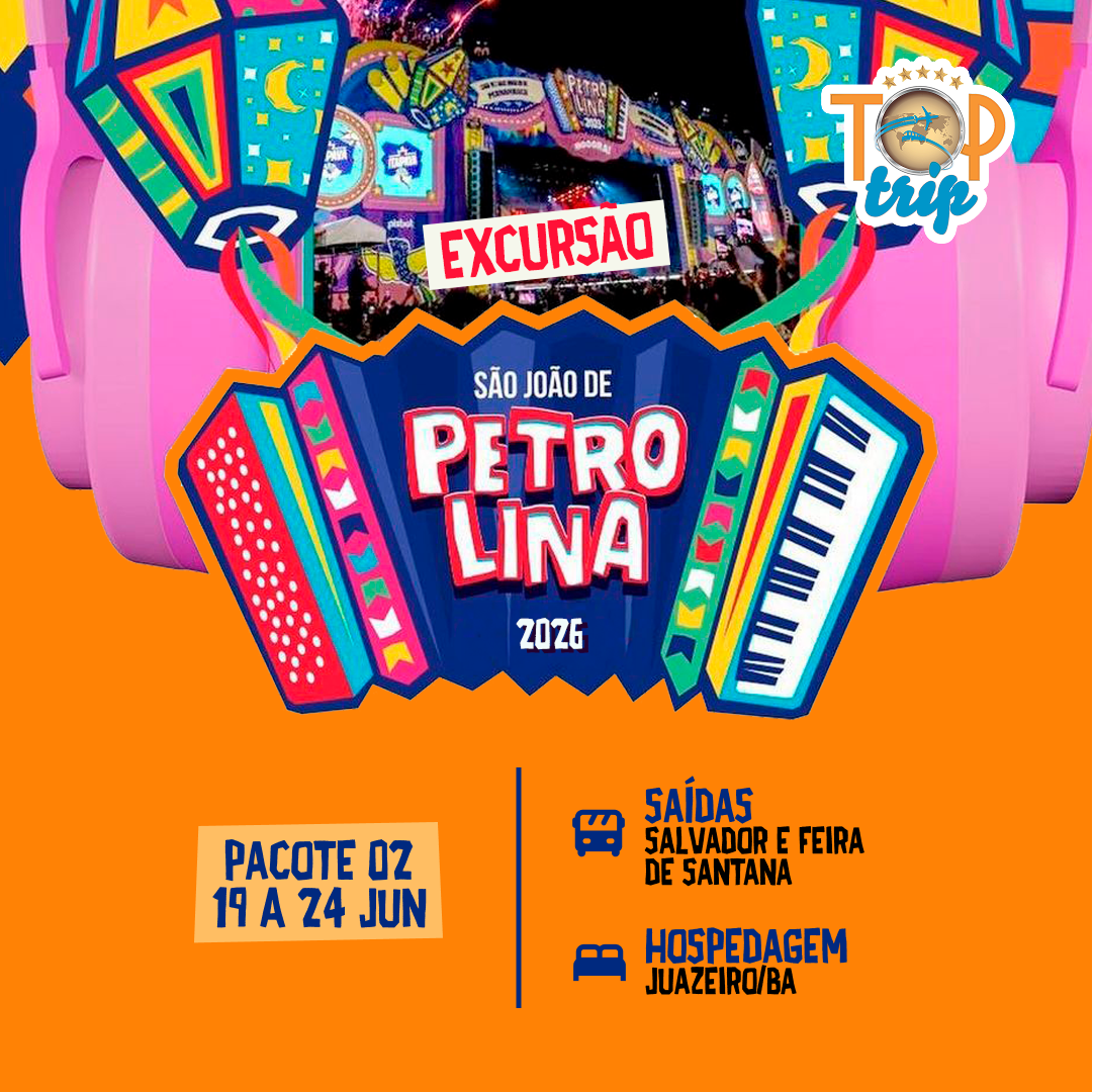 Dia 20/06/26 (Sábado) – Café da manhã na estrada. Logo depois, chegada em Juazeiro, onde nos encontraremos com o guia de turismo local e faremos um city tour em Juazeiro e Petrolina. Logo após, check in no hotel. Por volta de 16h, festa open bar no hotel. Saída às 19:00h para o São João de Petrolina;